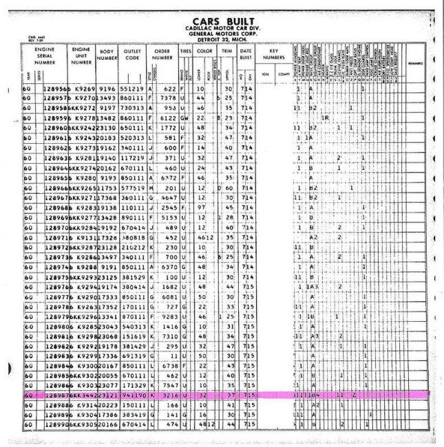 “Options are interesting: car seems to have everything except Q engine & Air Suspension on a Series 62. Plus it lists “General Motors” as the original owner on the paperwork.”