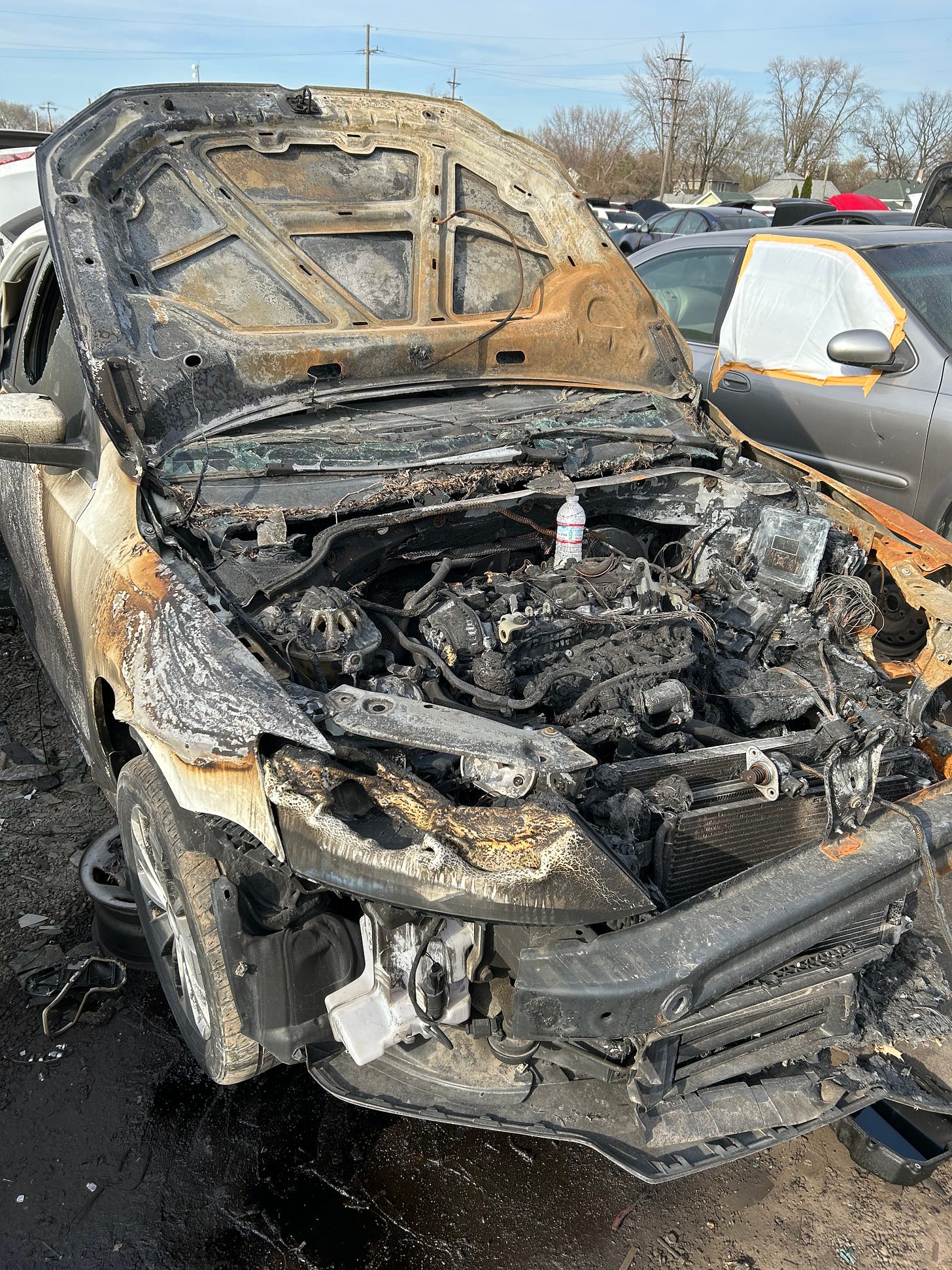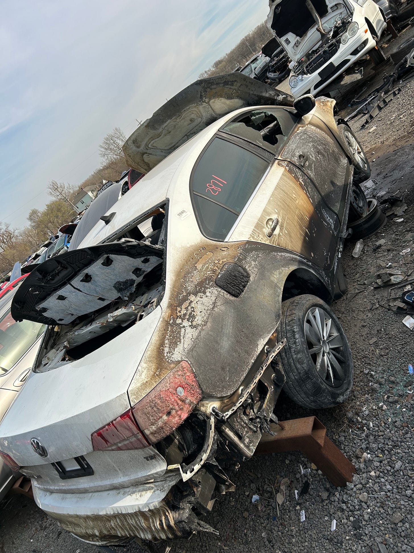 Rob stood fairly composed in the moment, standing next to the K-barrier watching his Jetta immolate. The flames were now forming roots under the engine, exiting the wheel wells. Intensely-bright flames fuming carbon black that absorbed all light in extreme contrast. He watched it climb inside the car. Heat licked the ceiling, making his business cards drop like leaves just before the windshield faded to a sickly yellow curtain. Then, Val’s window burst and released her ghost.