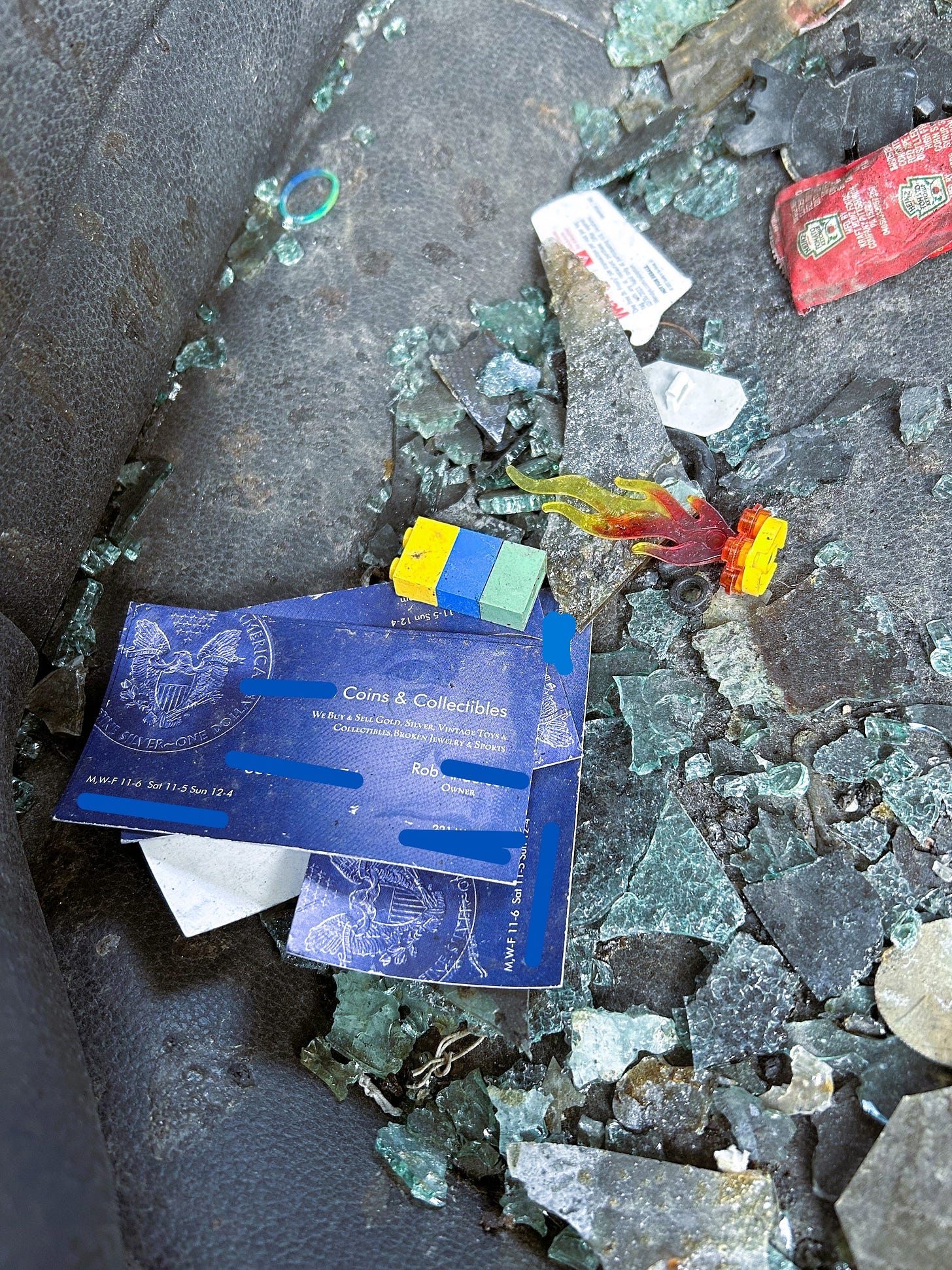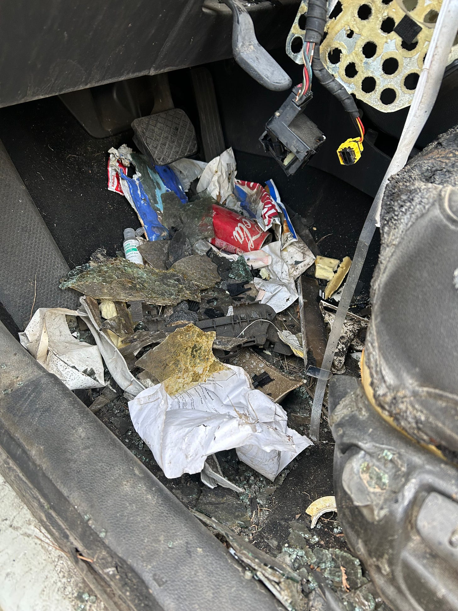 The next morning Rob treated his children to the traditional American breakfast. It came clad in the familiar yellow and brown paper designed for protection, but also for ruin. In less than a minute, these sheaths had completed their initial duties then found their forever home on the Jetta’s floors. Rob rained crumbs, and added his own wrapper. The seemingly weightless paper had formed layers until the bottom was crushed under the pressure of habitual carelessness.