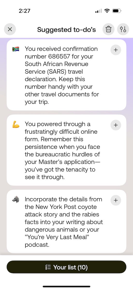 Specifically, summaries and/or transcripts of all your electronic and spoken comms and a highly personal “Suggested To-Do’s” list.