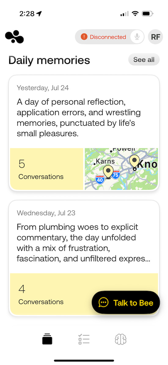 Unlike other AI apps, Bee doesn’t wait for you to ask it a question, or guess who you are (what you do or don’t do, like or don’t like, think or don’t think).