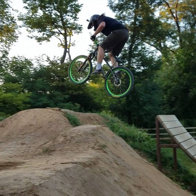 As long as we are Housekeeping... a few notes. I was in Asia for two of the past three weeks, and I have plenty of stories to tell. I'm riding, and enjoying, a great new dirt-jumper bike, about which I've previously written. The above photo doesn't look like much but for a mildly crippled and way-past-mildly-overweight 47-year-old it's quite difficult, which speaks to the excellence of my Ordnance frame and the various USA-made parts in its construction, particularly the Velocity USA rims.