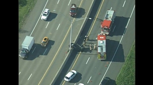 This is the third day in a row there's been a serious, traffic-stopping accident on Route 315 South in Columbus. What you see above is the crash that added an extra fifty minutes to my commute. At first glance it's just another incidence of somebody barrel-rolling a full-sized pickup truck over a Jersey barrier. But it has to be more complicated than that.