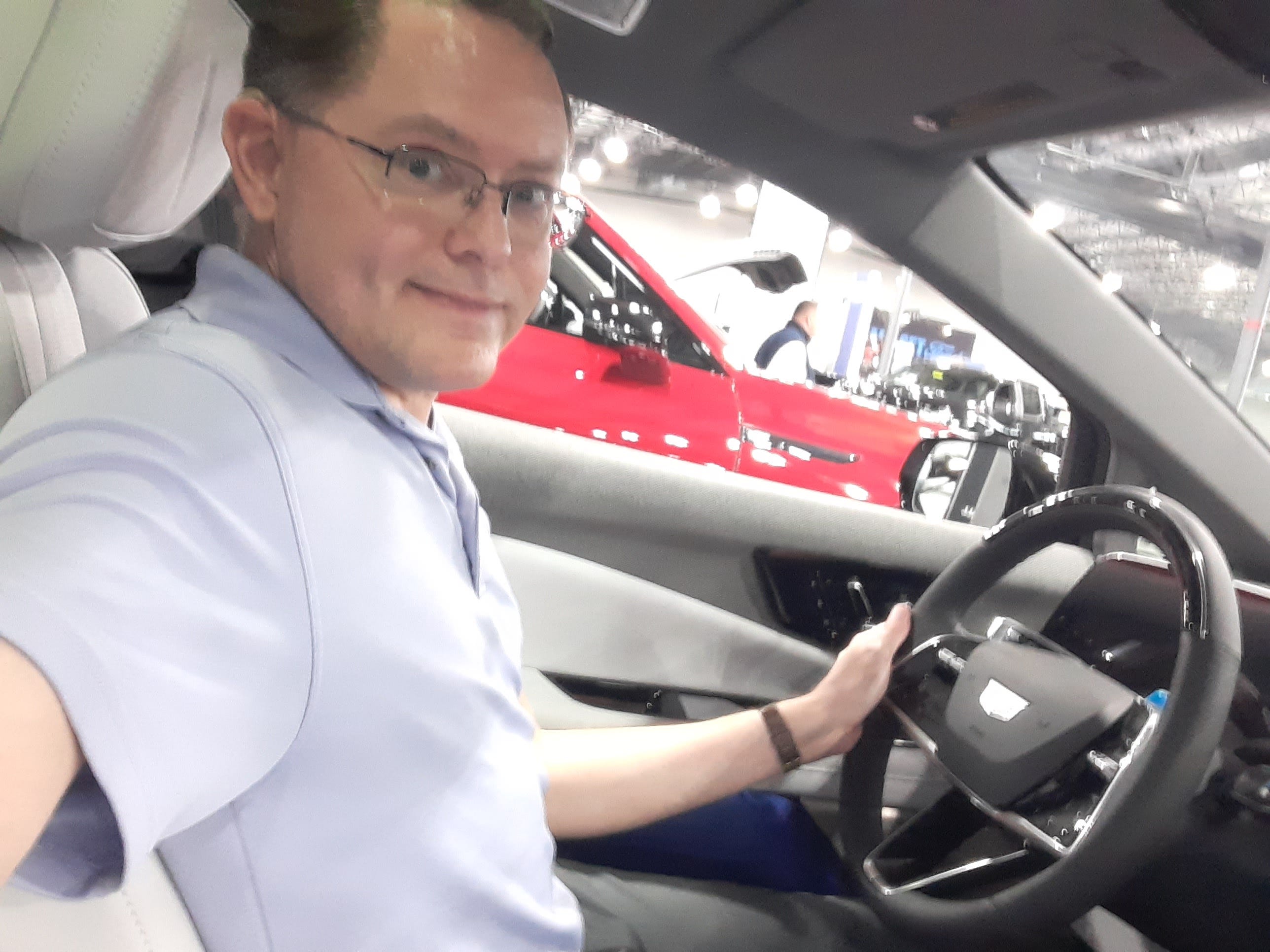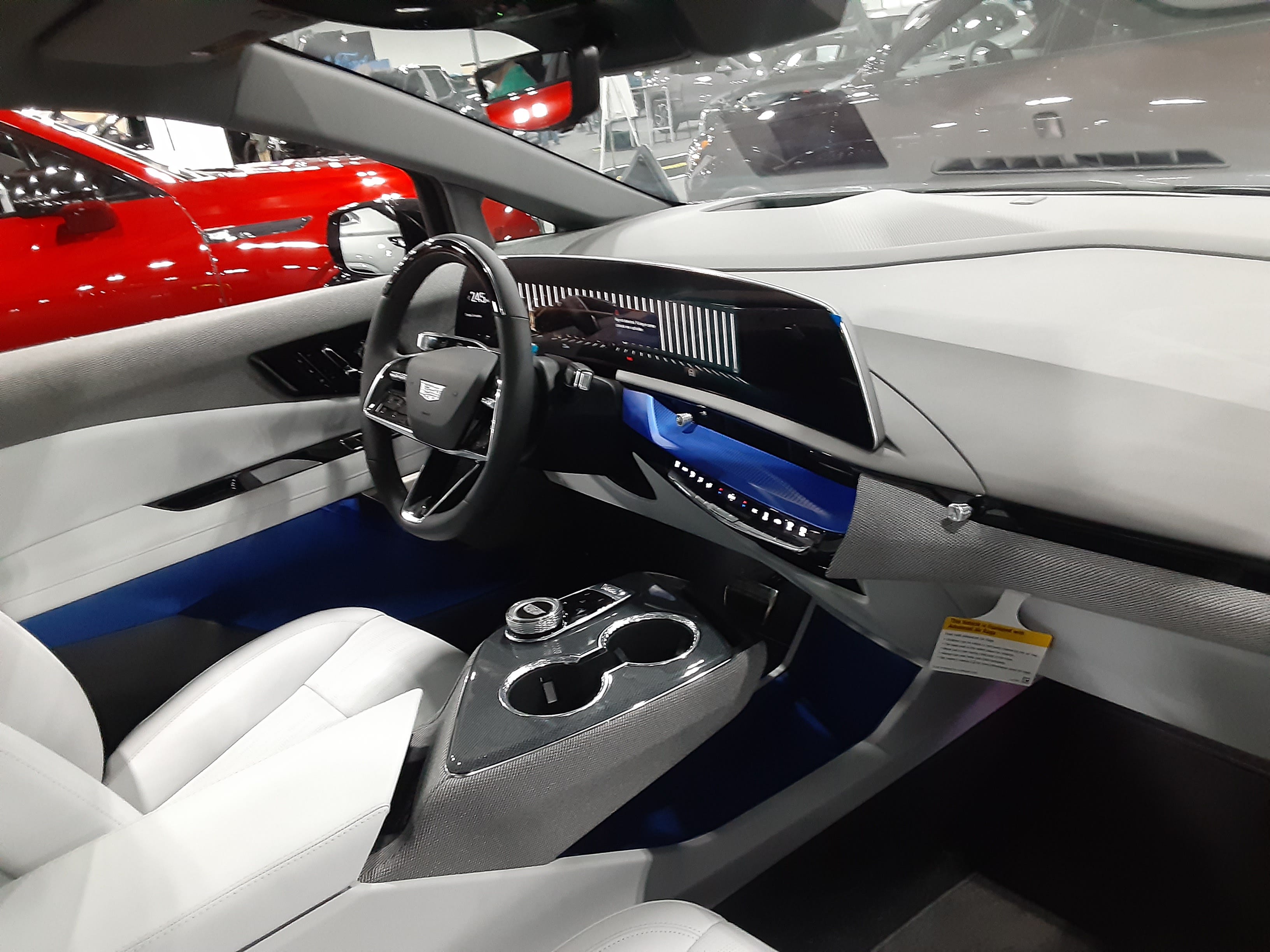 But the interiors are really nice and sufficiently “Cadillacy.” The Lyriq in particular has serious show car vibes inside. And the one on display, in a Klockau-approved amethyst hue with white leather, was pretty damn sharp. Even without an engine or sedan bodywork.