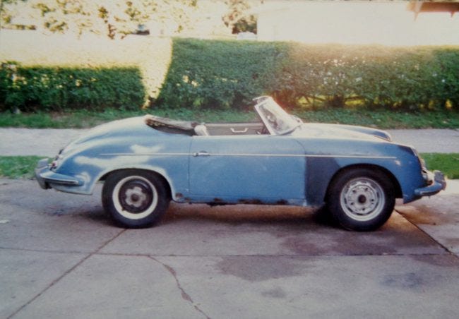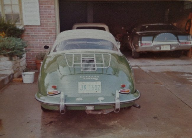 It was originally Ivory, but he had it painted in an approximation of Irish Green, a late ’60s 356/911 color. He loved it! A short time later he acquired a SECOND 356, this time a 1951 356 pre-A Cabriolet. He still had that car when I was born, and I remember its restoration as a toddler. He sold that one in the late ’80s to a collector in New York.