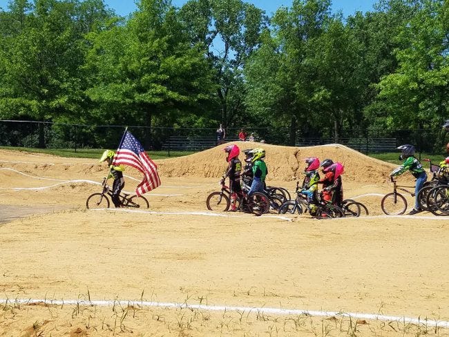 I try not to think too much about the contrast between the new Americans of my son's school, with their new-build four-bedroom homes looming over temp-tagged Toyota Avalons in the driveway, and the gritty, deployment-scarred parents of my son's competitors at this Midwestern BMX track. I will say this, however: they are both raising children who are profoundly interested in patriotism. This devil's bargain where Midwestern kids lose their legs so kids from Hyderabad can own rental property on the main streets of small-town Ohio appears, strange as it may be, to satisfy both sides.