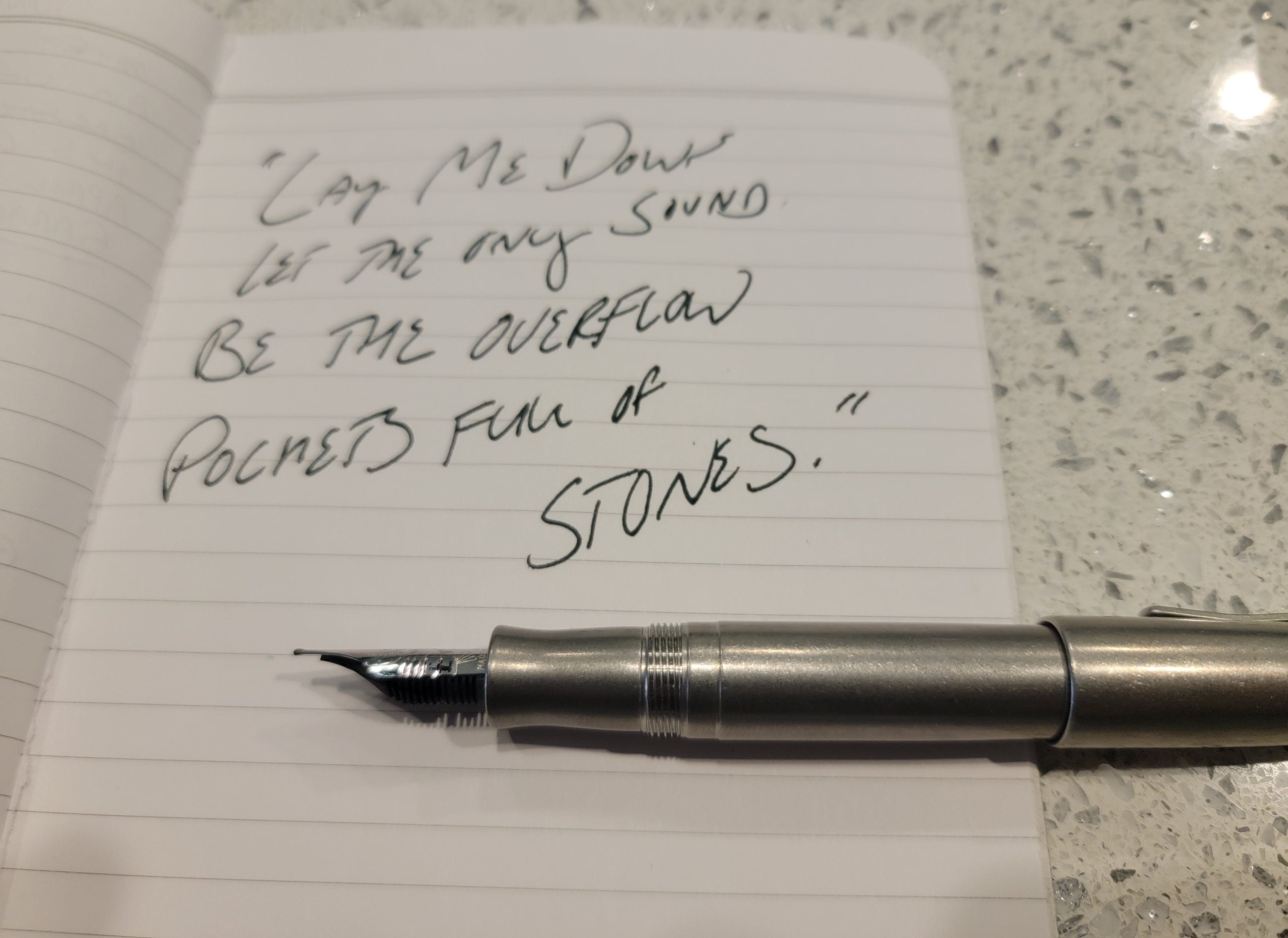 The nib is a true delight, affordably but carefully made by Nemosine in Germany. It has very little “flex” to it. The whole pen feels far more substantial than a Pelikan or Montblanc.