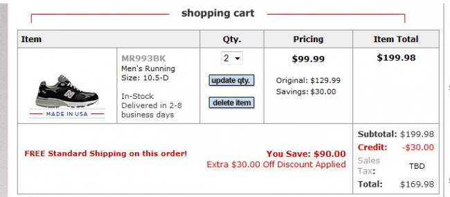 * The NB 993, which is normally $129.99. is down to $99.99 * There's 15% off on top of that * And free shipping