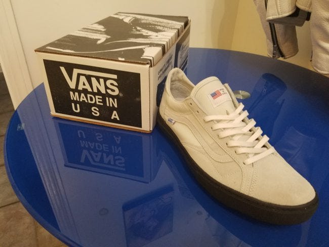 Street style is about wearing a better grade of sweatshop bullshit, or at least a more brightly-colored grade of it. Brands like "Supreme" are very big in street style. As far as I can tell, a "Supreme" clothing item is the same as a Wal-Mart "Faded Glory" clothing item except it says "Supreme" on it. Apologies if there's something more to it than that. Anyway, Vans is courting the "street style" crowd with their ArcAd products, which are sold through a very select group of dealers. Most of those dealers are overseas and many of them are in Japan. The Japanese are sticklers for authenticity and some of them wanted real Vans, by which they mean American-made Vans.