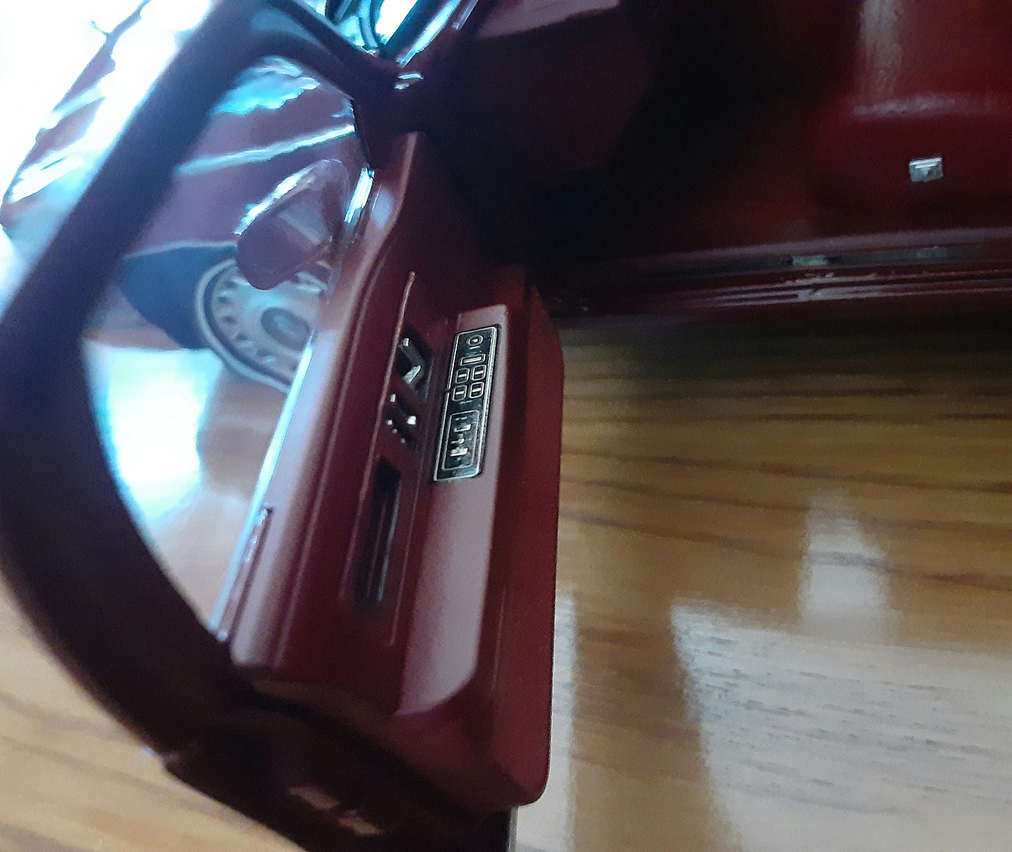 That is really neat. I've only ever seen models and Hot Wheels/Matchbox cars where only the front doors opened. Who was the manufacturer? Did they do any other models? Red or blue is better than grayscale.