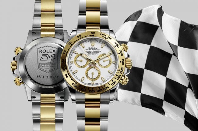 This year's Daytona winners, including our AER teammate Jesse Lazare, got a two-tone Daytona. This breaks the link between the race win and the "plain" stainless-steel Daytona. If you want a watch like the one Jesse has, it will cost you $16,900 against the $12,400 of the stainless steel model. That's no coincidence, as pre-owned stainless Daytonas are currently commanding around $17k. So Rolex has done a very tricky thing here. For the same price as a pre-owned stainless model, you can get the new race-winner model. All the retail prices stay the same. But the net effect will be to increase Rolex profit at the expense of the speculators, hoarders, and resellers.