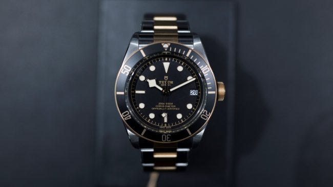 What makes this a big deal? Well, two-tone watches have long had a lousy reputation in the Rolex resale market. They're seen as a halfway point between the unmistakable luxury message of a solid gold Rolex and the everyday/WASPy/sporting message of a steel watch. To put it not so kindly, a gold Rolex says that you can afford a gold Rolex, and a steel Rolex says that maybe you wouldn't be caught dead wearing a gold watch, but a two-tone Rolex suggests that you really want the tacky-ass gold one but you can't quite afford it. You're trashy and poor.