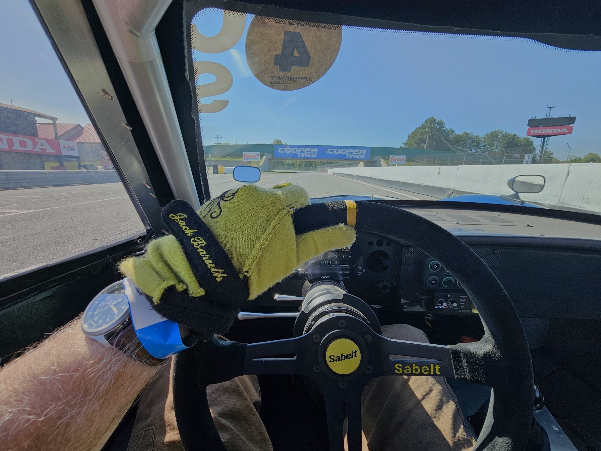 The other Cardinal being driven on track today was in the custody of a late-teenaged instructor for the “AutoInterests” group. He came back and complained that “it understeers and oversteers at the same time”. Oh, you sweet summer child! That’s not what’s going on! It’s just that you’ve never sat far back enough in the car to actually feel it rotate around the (virtual, in this case, because it’s actually a fully independent pair of sticks) back axle!