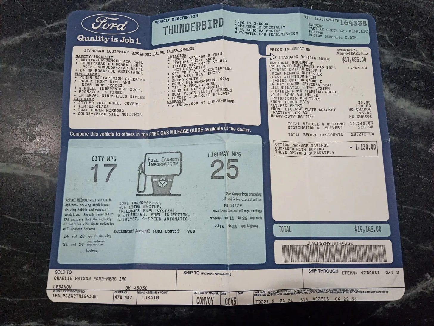 I was eventually rewarded for my performance by being permitted to order my own demo, just like the 55-year-old Brylcreemers who had been serving at the store since before ‘Nam. I knew exactly what I wanted. Start with a 1996 Thunderbird LX, black with beige interior. Add just three options: Compact disc player. Power Moonroof. And, most importantly, a 4.6 “mod motor”. The order was accepted at the factory. I was four weeks away from my ‘Bird. But Rodney had some other plans involving Ford’s aging coupe…