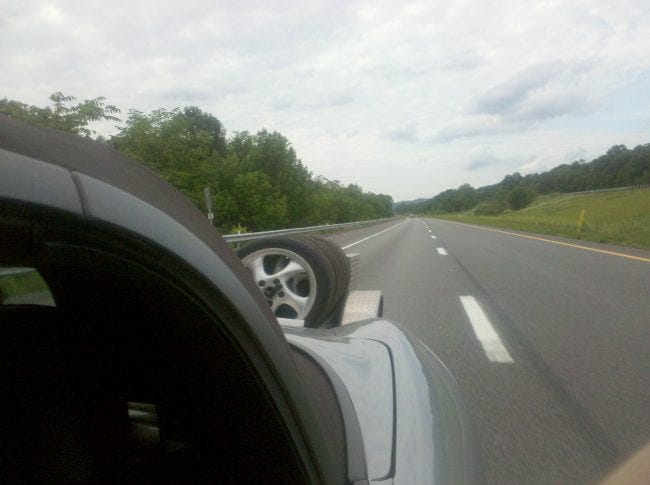 You cannot stay on the road if you waste money. I drive an extra thirty miles to avoid the $26.20 toll my little tire trailer and Porsche would incur on Route 76. I forget to program the second part of my trip correctly and Route 95 relieves me of twenty-seven dollars. 572 miles from the front door at Switzer Performance in Oberlin to the gate at NJMP. The trailer makes my Boxster a langheck, increasing fuel economy for some odd aerodynamic reason.