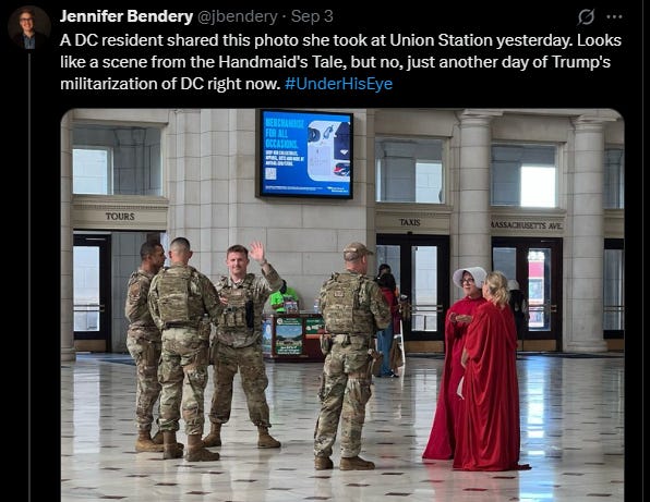 I know this is a no-politics week, so take this as a commentary on media and how far people will go to support their chosen narrative. Jennifer Bendery, who writes for the HuffPo and specializes in what I think of as “MSNBC wine aunt outrage”, alerted her readers to the following situation happening in Washington DC: