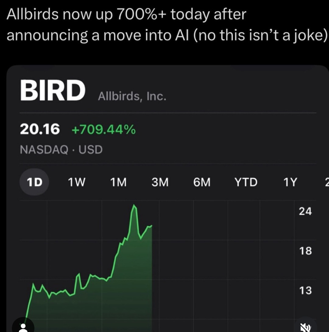 I hope you got some Tweed Runners on sale, like I did, because Allbirds has now completed the chrysalis-to-butterfly transition that, it’s now obvious in hindsight, was always destined to happen. The firm has sold its shoe business for $39 million to a company that will probably run it the rest of the way into the ground by selling junk “Allbirds” to Famous Footwear, and it has now pivoted to… being an AI compute resource. It’s raised $50 million on top of the $39 million it got for selling the shoe, and that money will be used for buying “compute”.