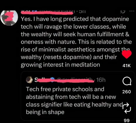 What I’d like to suggest is that the general ennui among the American upper middle class isn’t a function of them being too numerous — it’s a function of them being too well informed. We all spend huge amounts of time now watching wealthy people buy stuff and consume stuff and travel places. Even if you’re not swayed by any of that stuff, which requires some real self-discipline, you’ll be continually carpet-bombed by astounding displays of raw wealth for its own sake. AI “unicorns”. Bitcoin zillionaires. People who post their net worth on social media to prove their adherence to a secular religion of cash hoarding.