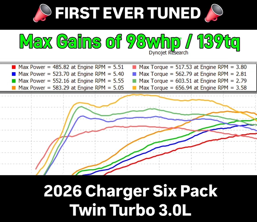 For $529 and a few dyno hours, you too can have 583 rwhp in a gasoline-powered Charger. If that number looks familiar, it is because that’s in the neighborhood of what stock 707-horse Hellcats put down on a Dynojet. Is there more available? Of course there is. But this is what’s easy. This car doesn’t have an intake or exhaust on it. The fuel is “spiked” a bit to E20 for detonation resistance.