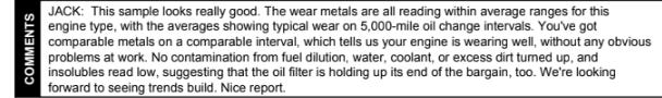 On a more positive note, the first Blackstone report is in on the little Lexus, and it’s all good. Better than good, really. Wear is low. For what it’s worth, the 3.0 V6 in my ES300 puts up better wear numbers than the 4.3 V8 in my LS430, which has just 10,000 more miles on it. Both of them are great, but the ES300 is measurably better. Also, the Pennzoil Ultra Platinum I put in the ES300 definitely held up better than the Kirkland synthetic that had been in the LS430.