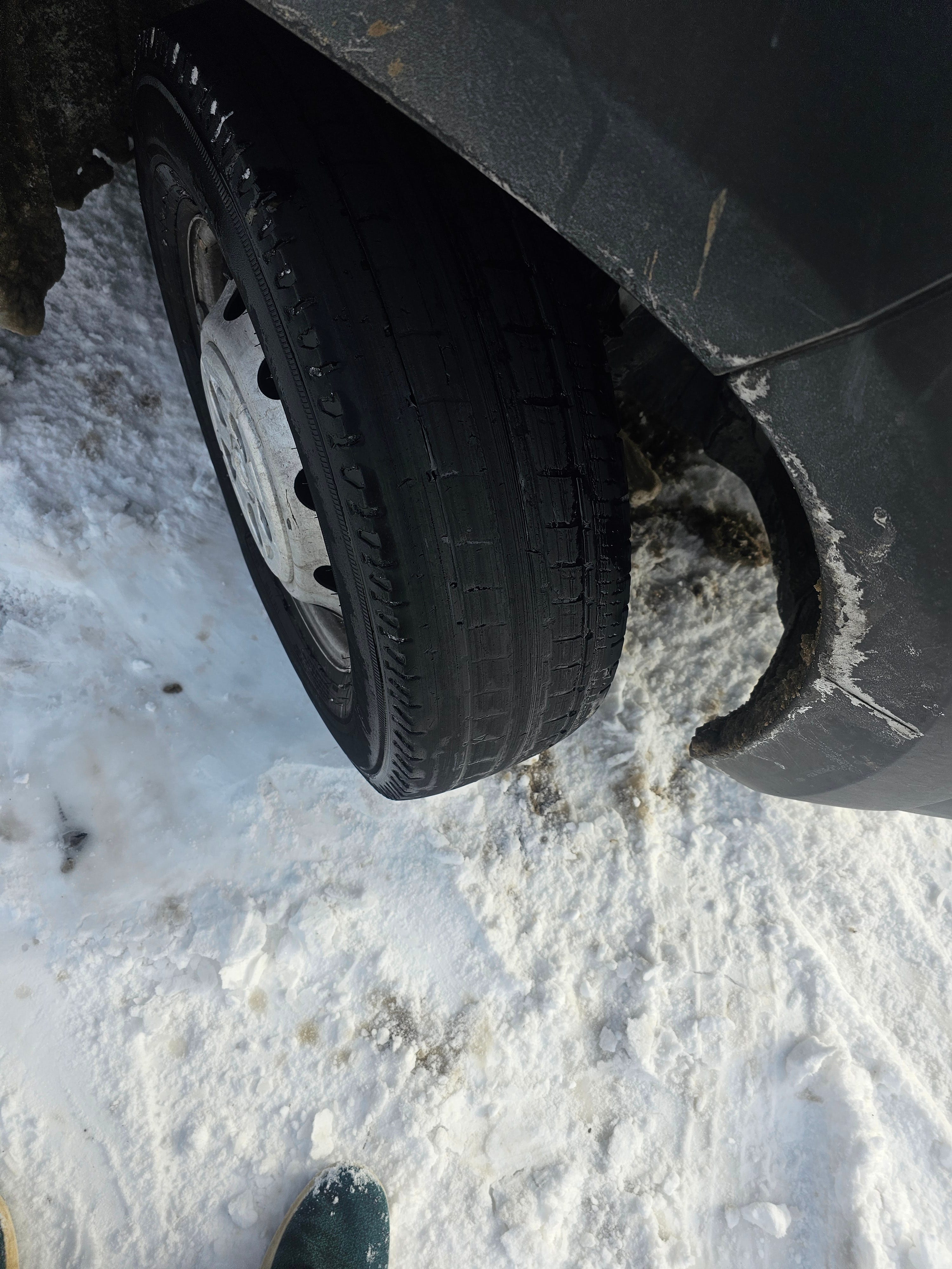 Alright — so what do we see in this photo besides a “Storm Teal” Allbird shoe? If you guessed “A tire that is worn completely bald on 80% of its surface,” you would be correct. If you further guessed that the tire is mounted to a RAM Promaster, you would be further correct. If you took it all the way to say “Based on the color of the very small visible area of painted body panel, that is an Amazon delivery Promaster,” you would be 100% correct.