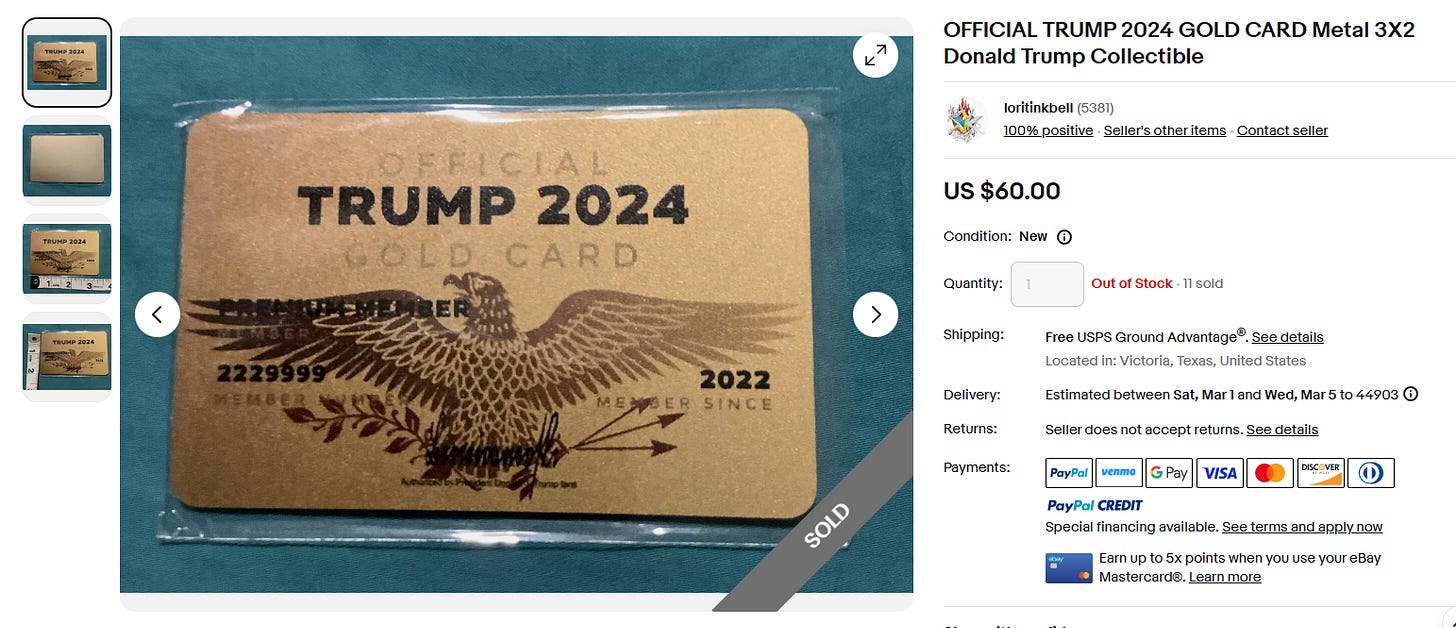 I like the transparency of it; instead of having vaguely defined and unevenly administered programs for high-net-worth citizens, you have a price and a result. Trump said off-the-cuff that “10 million” people might take advantage, which is surely wishful thinking given that perhaps only 15-20 million people outside the United States have the ability to stroke the check and the entire global money supply is only something like $150T, but make no mistake: even getting 35,000 people to join the program would pay our rather considerable Ukraine-war tab, at least the tab to date. The most exploding-head way to spend the windfall would, of course, be on a border security program.