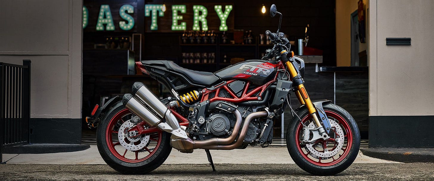 Speaking of being a hater, it’s time to say goodbye to the only consumer product that I ever refrained from buying out of sheer, undiluted, 100% petty unpleasantness, namely: the Indian FTR1200. I had every intention of buying the flat-track-styled streetbike when it came out. Not only had Indian been very good to me in the past, giving me a chance to ride a Chieftain cross-country and attend Sturgis in 2016 on their dime, I also loved the idea of having an American-made “hooligan bike”. Also, I could have easily afforded it at the time, because I had yet to cut the throat of my professional career by leaving the contract-tech game.
