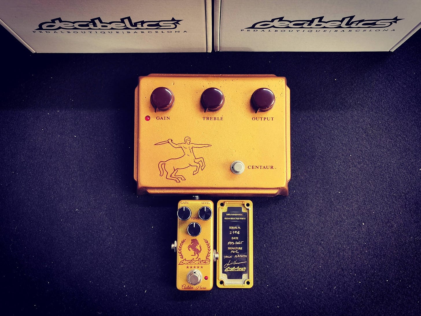 Back to pedals. An ACF reader made me aware of Decibelics, the Barcelona one-man boutique that produces the finest Klon Centaur replicas known to man. What’s a Klon Centaur? It’s about five grand, is what it is. The now-famous distortion pedal was made by a one-man shop in Boston between 1994 and 2008, but he kept falling behind on orders so second-hand prices went through the roof even as more and more marquee-name guitar players started relying on Centaurs for their live sound. He tried simplifying the design and product after that, but the market didn’t want what he had to offer at that point.