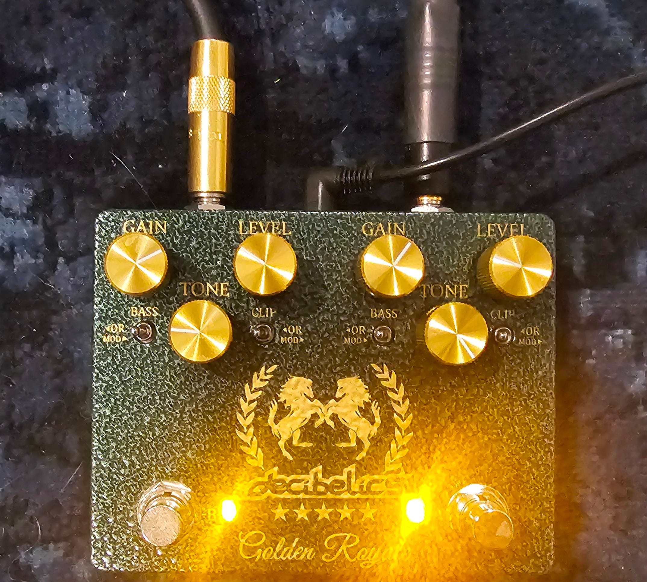 Made in small batches by appointment, his “Golden Horse” is a mini-form-factor Klone using the same wiring and transistors as the original, with the owner’s name written inside the case and a very nice paint job in your choice of multiple colors. Although I’ve been on the list for a Horse, I lost my patience and went to Reverb for a used Golden Royale, which is two Klons placed in series so you can have both a “clean boost” for non-solo playing and a “cranked boost” for solos, all in the same box.