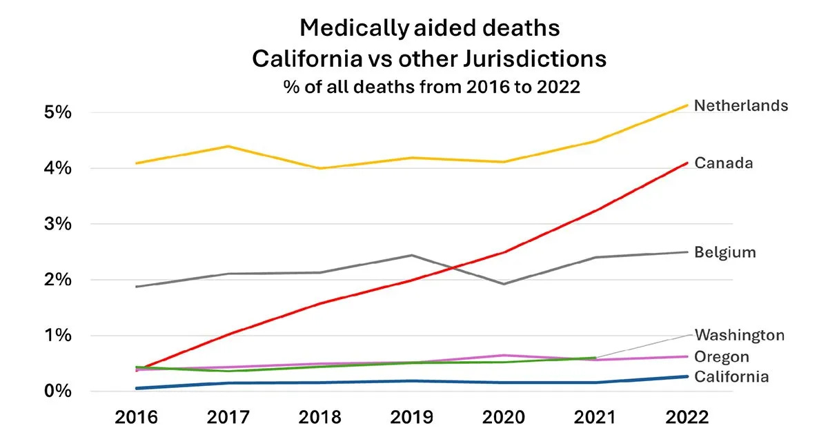 More than one in twenty deaths in Canada can be attributed to “MAiD”, or “Medical Assistance in Dying”. And the percentage of those where the lucky recipient was not facing an otherwise terminal medical situation continues to rise.
