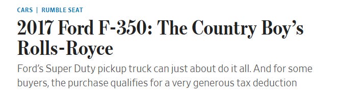 Every year or two, for the past decade, Ford gives the Wall Street Journal the loan of a Super Duty pickup. The WSJ, in turn, has Dan Neil write a “review” of the truck from the perspective of a very badly-closeted gay man1. In each of these pieces, Neil moans suggestively about the big, long, hard steel chassis and aluminum body then complains about how the girthy, guzzling engine just takes what it wants from the planet and gives nothing back.