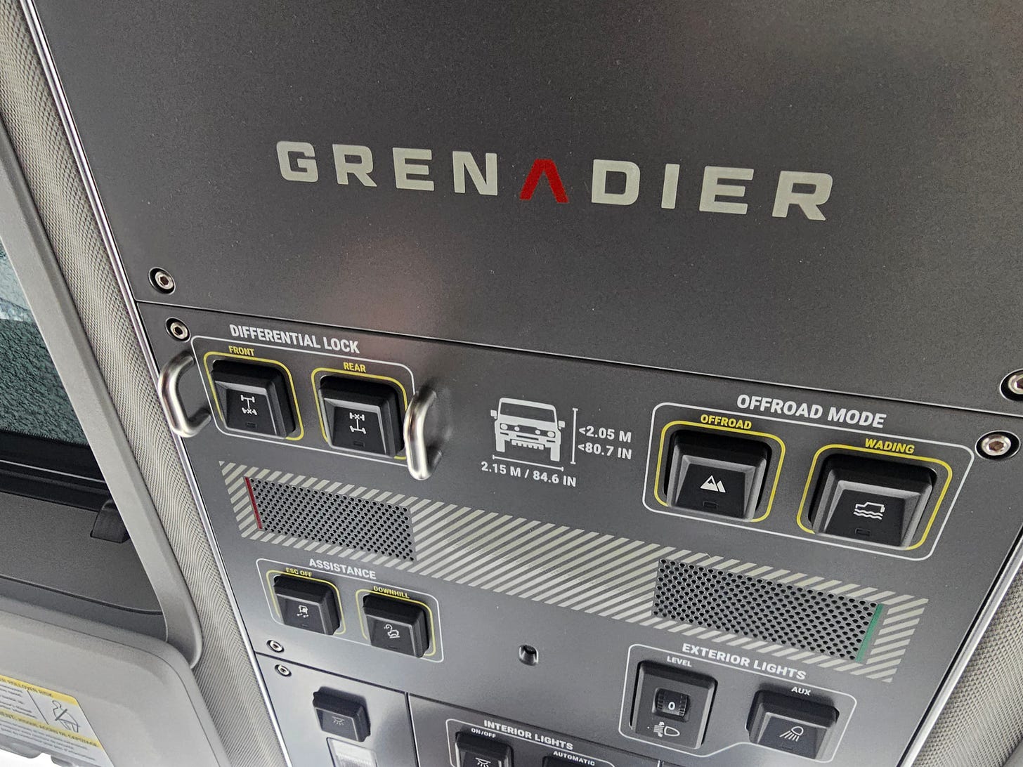The Grenadier is really just what the kids call a vibe. And what a vibe it is. Everything about it is just plain fun, from its dopey-Land-Rover look to the aviation-style overhead console. Sitting in the Grenadier for ten minutes makes you realize just how corner-cut the Wrangler and Bronco, for all of their other virtues, truly are. Like my Radical SR8, it has the sense of being kinda-sorta lashed together from the most expensive component parts humanly possible.