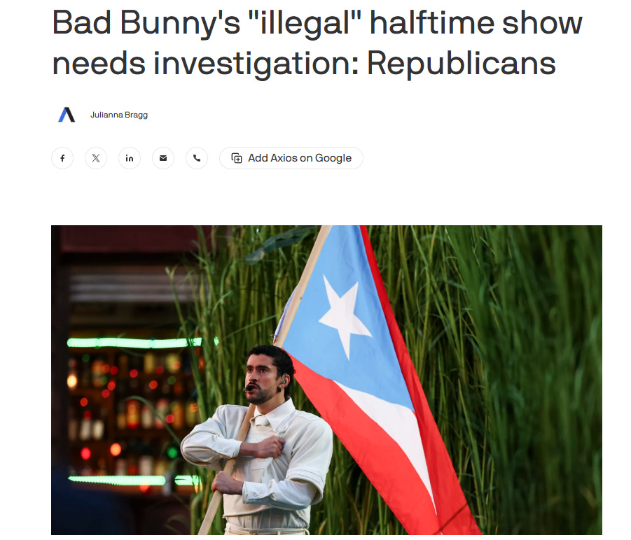 It is moronic to call this “activism” or “anti-American”. Bad Bunny, like him or loathe him, is the biggest artist in the world right now and, frequently, the #1 Spotify artist in the United States. This should be no more controversial than having any other top artist perform. He is not a niche performer.