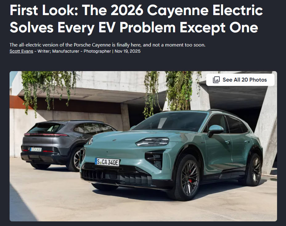 The car that changed everything for Porsche, the Cayenne, is poised to do it again. This time, it’s not changing body styles but powertrains. The 2026 Porsche Cayenne Electric looks ready to solve nearly every issue dragging on EV adoption and potentially reverse the company’s fortunes.