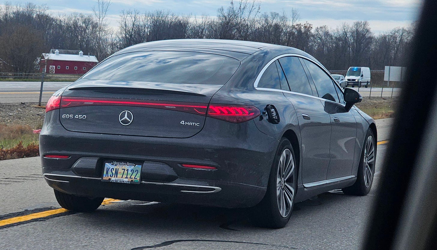 As the photo above shows, I had the rare pleasure of photographing a Mercedes EQS the other day, from the comfort of my mighty Lexus LS430. The EQS had apparently suffered a charging flap failure, so the owner had secured the flap with black duct tape… which didn’t hold once they got on the freeway.