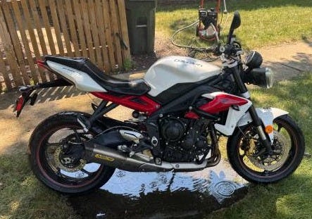 “Triumph Speed Triple. 13k miles. Actual is 12,9** Front brake handle is broken. Replacement is on the way and will be installed. Rear brakes have just been bled. New oil and filter. New battery. There is no body damage, it has frame sliders and an aftermarket arrow exhaust. I have the original exhaust somewhere in a box. Tires are old enough I wouldn't ride it far without changing them but I've taken it to work and back without issues.” He bought another Speed Triple so you know he’s convinced by the bike. $3500 or possibly less to an ACF reader. If you want to be put in touch, comment below. Someone please buy this motorcycle before I do. What a deal.