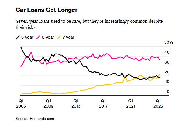 Everyone’s talking about the Bloomberg article that blows the panic whistle on seven-year car loans. I’m personally fascinated by this excerpt: